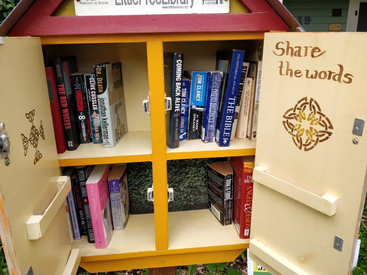 Little Free Libraries[1] are small, typically wooden, structures that liberals put in their front yards. They contain a stock of books, and passersby are free to take books and leave books as they choose.